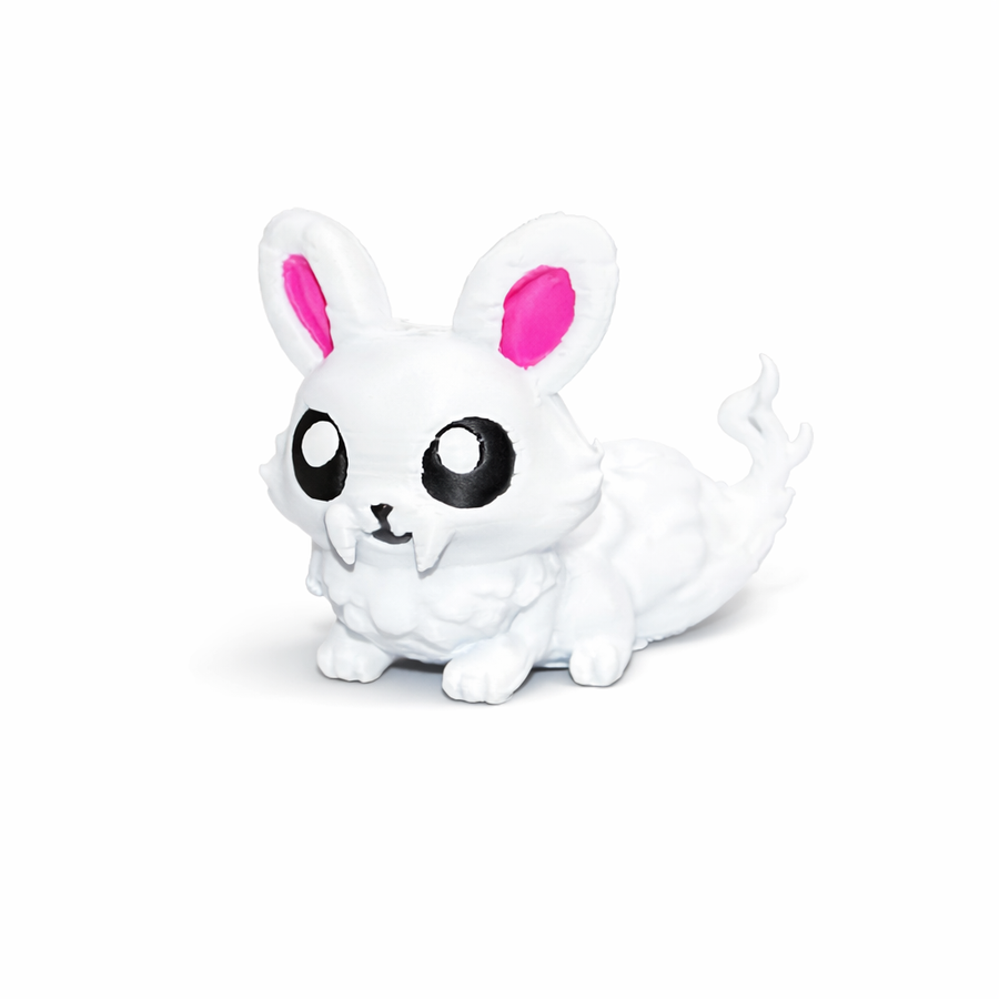Sweet face. Hollow eyes. Hot-pink ears on a ghost-white body. Reportedly screams at 4AM โ indistinguishable from the crowd.